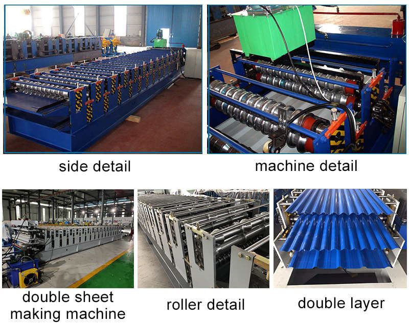 Double Layer Roll Forming Machine is a mechanical equipment for producing color steel tiles, which provides strong support for the construction industry. The construction of many color steel houses will use the color steel tiles of different shapes and colors produced by this equipment, which enriches our building materials market and improves the economic construction of related industries. Compared with other traditional equipment, the biggest feature of this product is that it adopts a double-layer production design. Although its operation difficulty is a little higher than that of a single-layer roller press, its production efficiency is very high. You can choose different types of molds to complete the production of different embossed sheets.